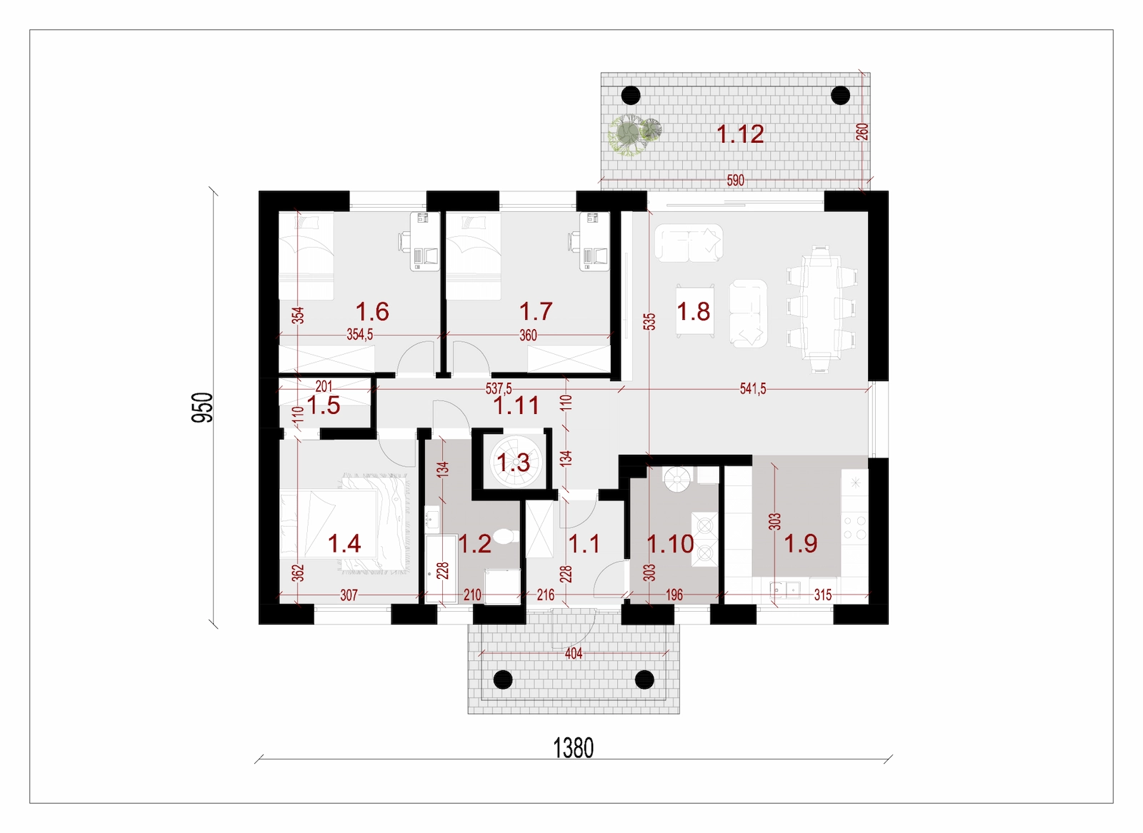 | 1.8 | Salon + jadalnia | 28,75 | |