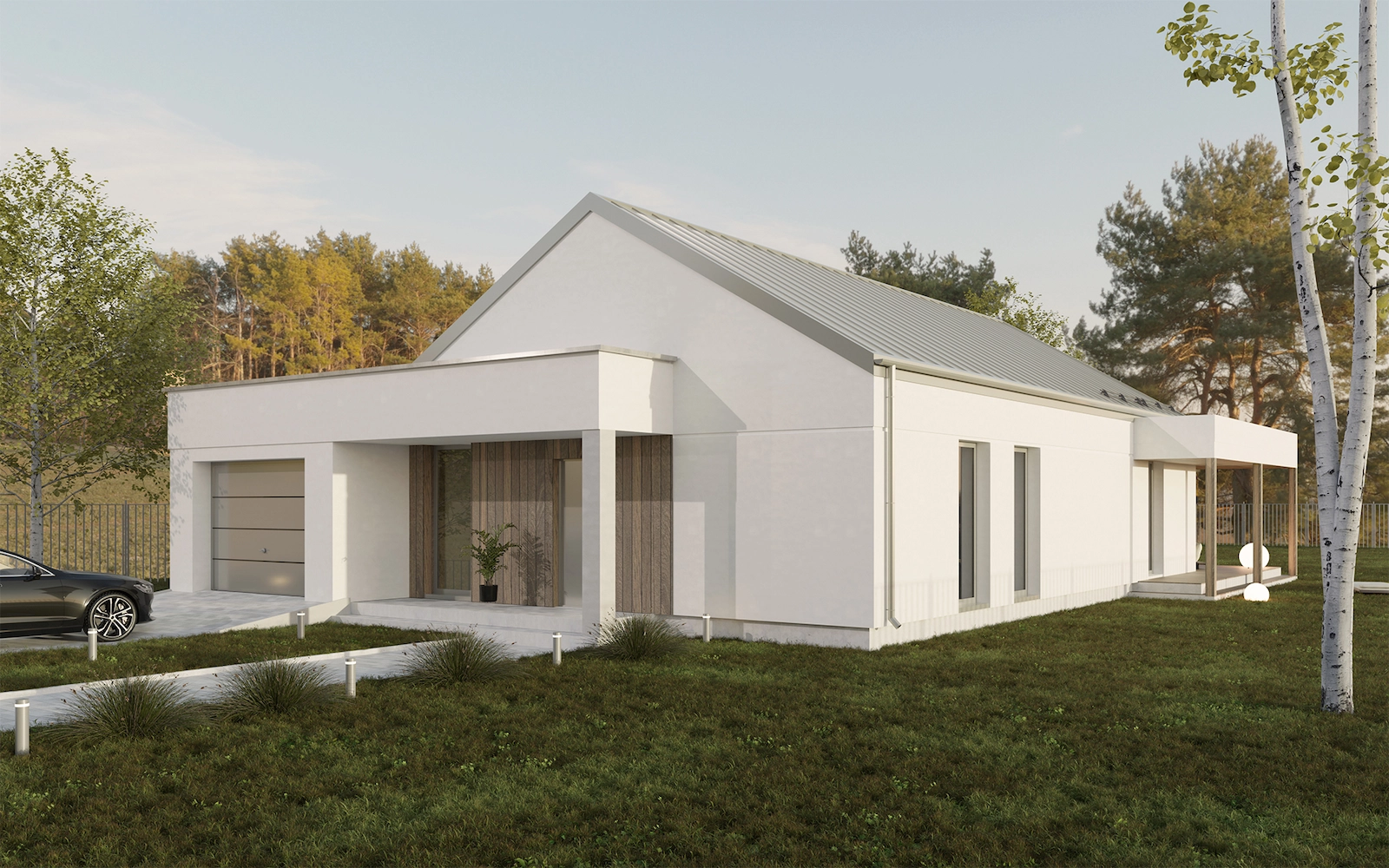 Gotowy projekt domu jednorodzinnego parterowego z garażem jednostanowiskowym